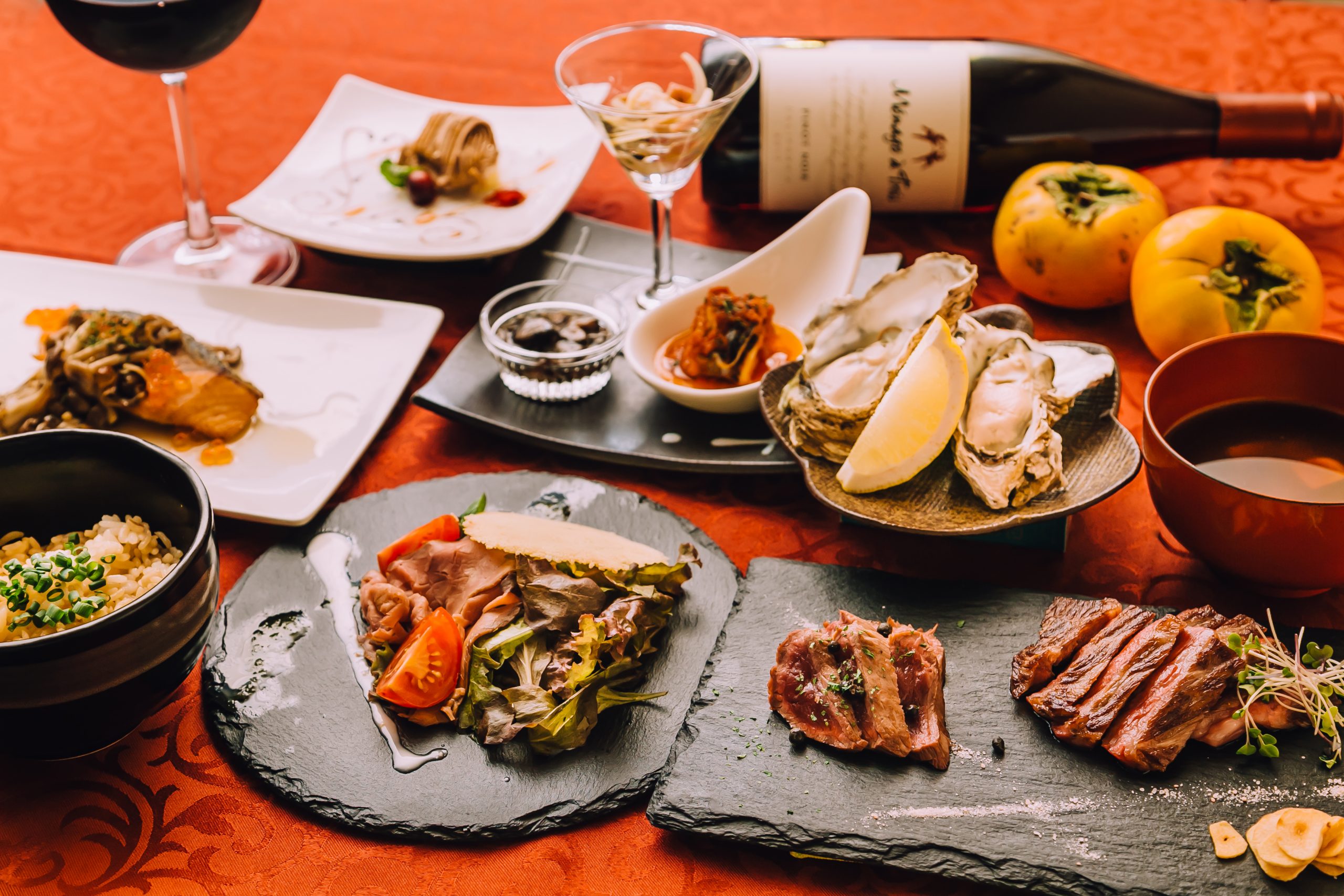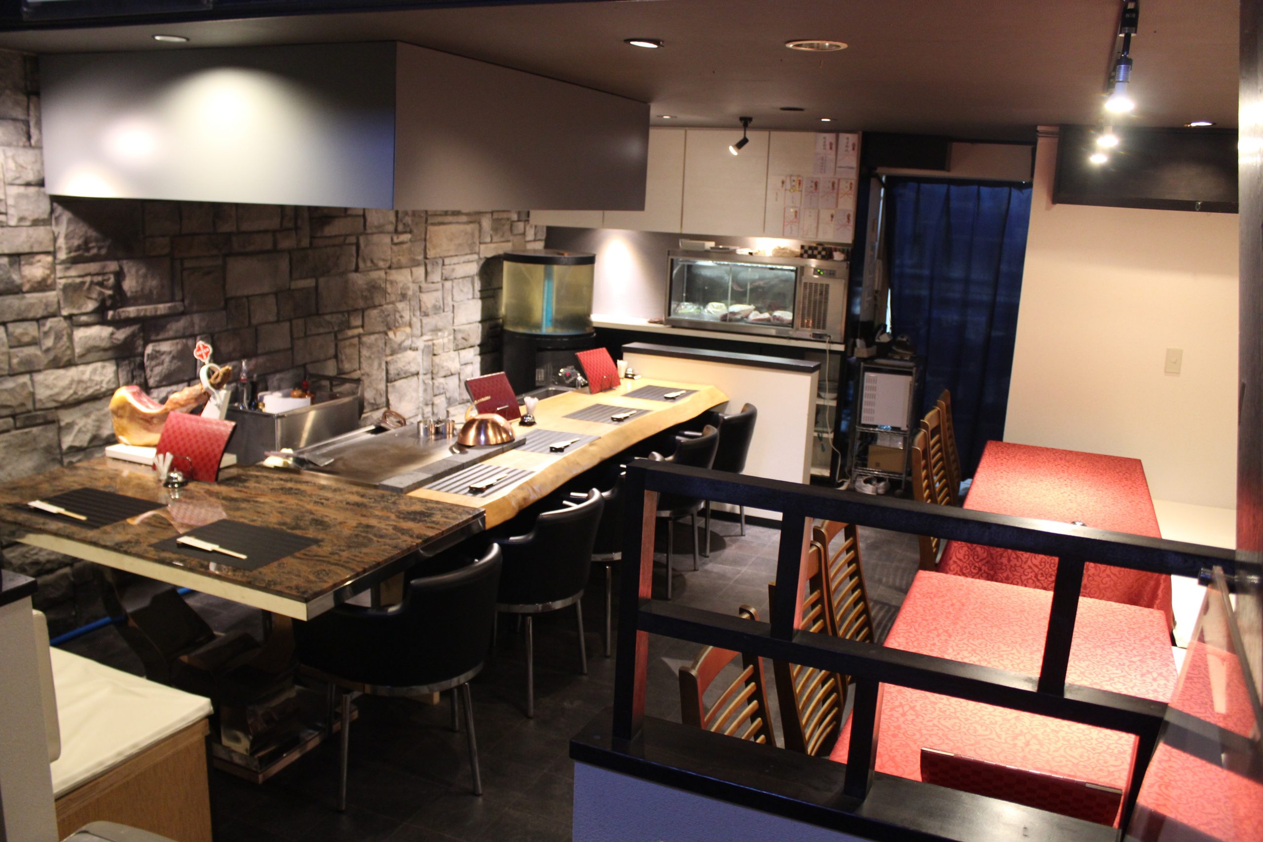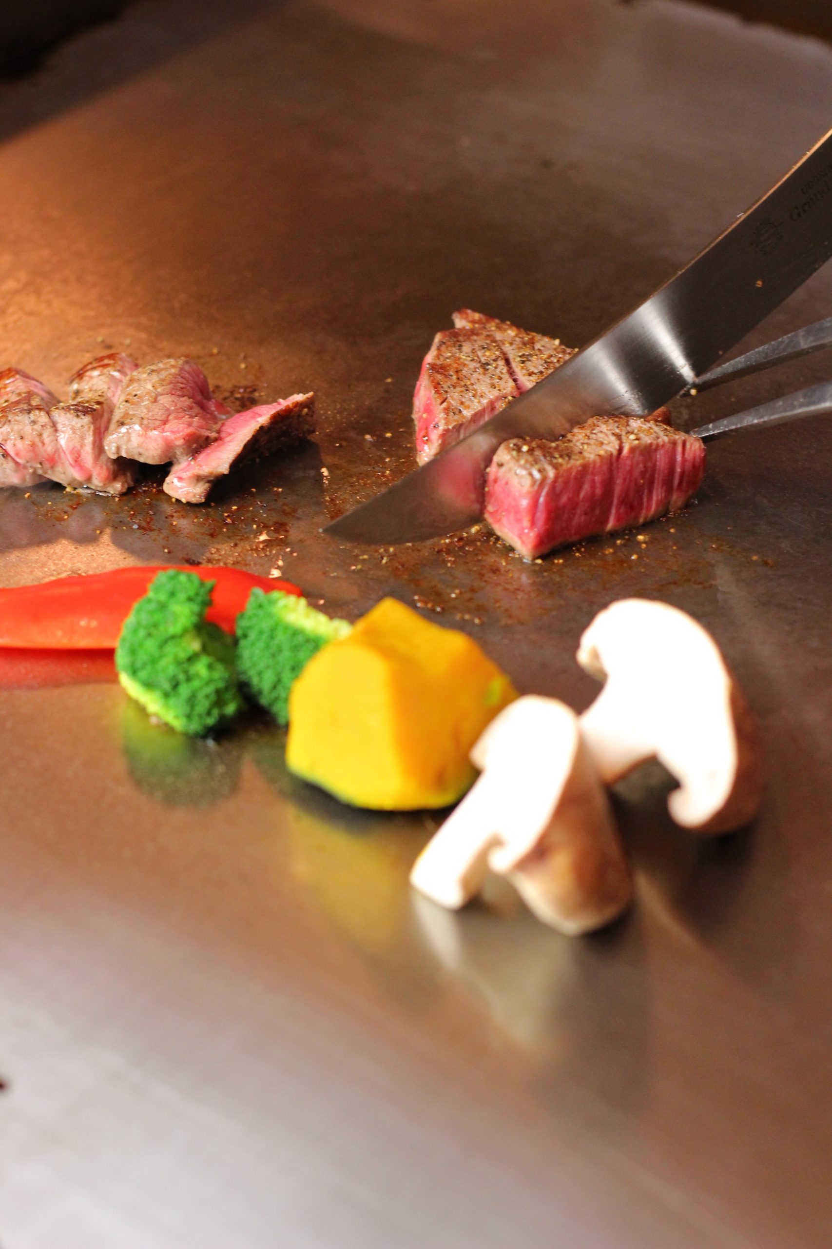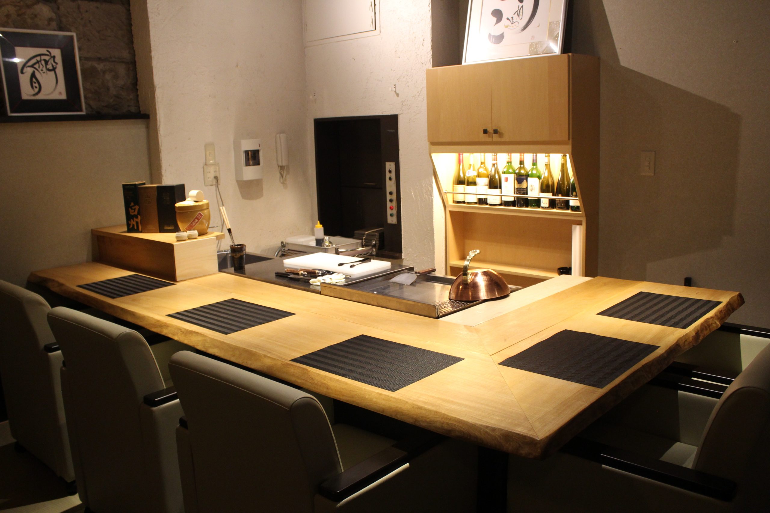 店主がハンターゆえ、最高の仔鹿と、A5ランクの国産黒毛和牛A4.5.を30日熟成させ最高の状態の牛肉をお召し上がり頂けます。カウンター席では上質なステーキや魚介等を焼く鉄板を目の前でお楽しみ頂けます。